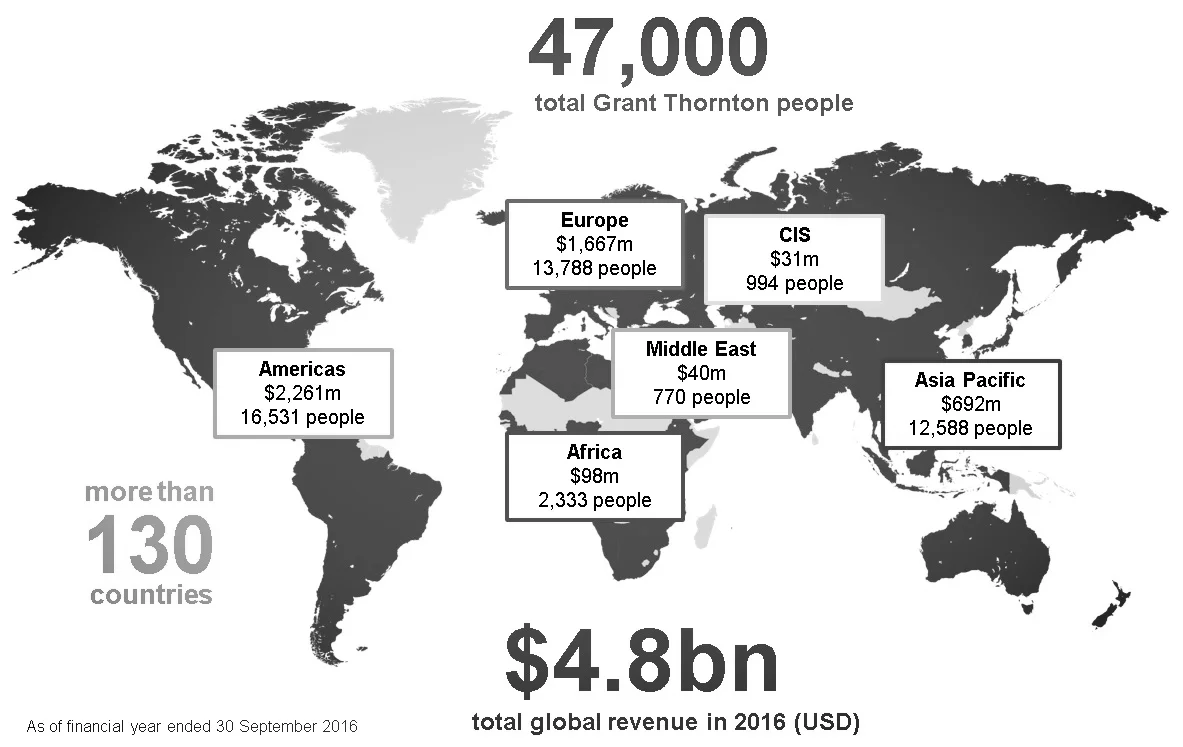 Grant Thornton member firms have seen their revenues grow by 3.3% on average, measured in US dollar terms. The firm's headcount in the mean time grew by 11.4% on the year previous, breaching 47,000 people.